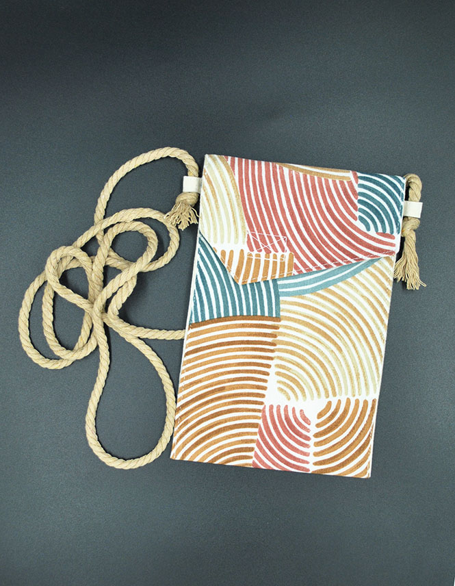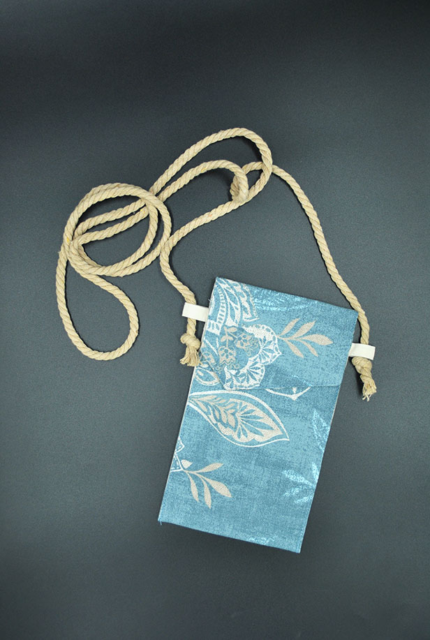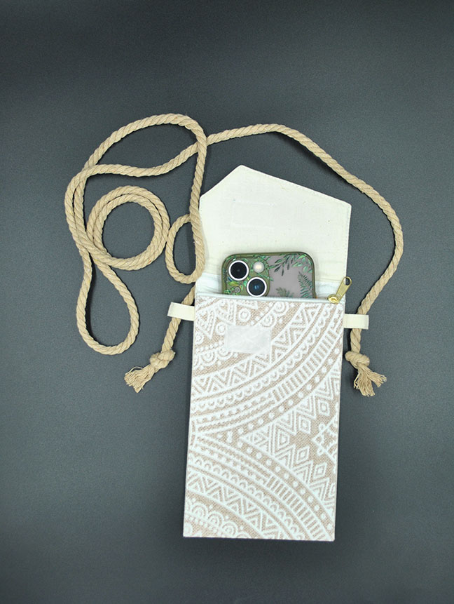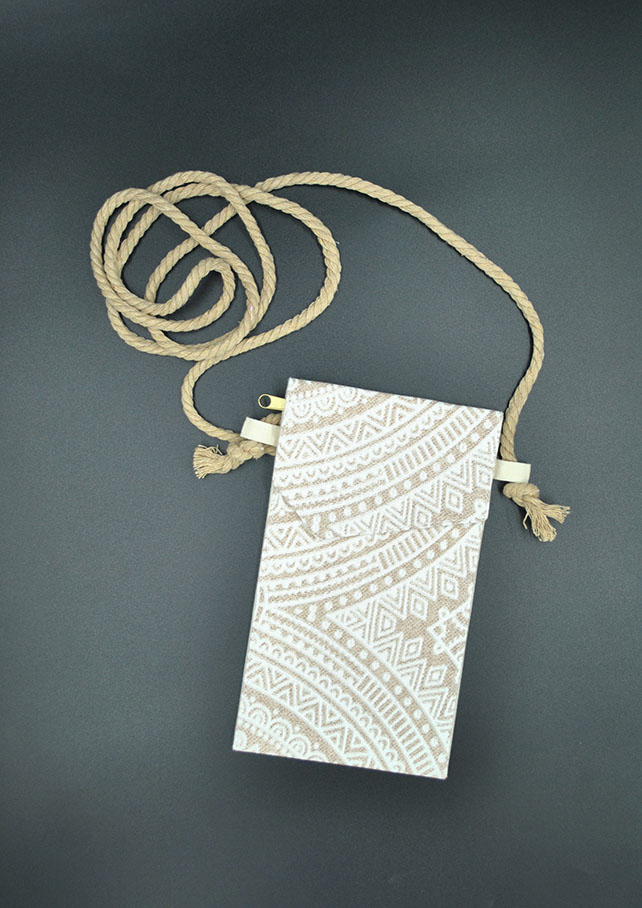 Dnes hodně oblíbené pozdro na mobil přes rameno. Délku upravíte uzlíkem na kroucené šňůře.