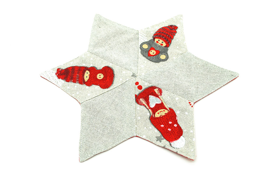 Krásné prostírání ve tvaru Hvězdy s různě rozmístěnými ,,kulíšky". Prostírání je oboustranné, tak že po uplinutí Vánoc jen otočíte a můžete využívat dál. Parádně se hodí třeba pod kytičku.