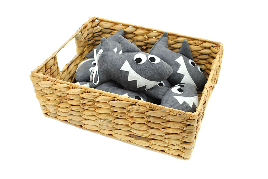 Žralok mini je malinká kopie polštáře ve trvaru Žraloka, kterého můžete věnovat jako drobnost pro radost.